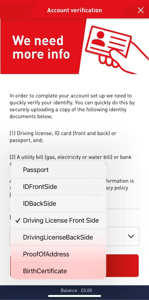 This is where you may need to provide proof of identification to prove that you are a real person, and that you are over the age of 18. Please note that not all accounts will be asked to verify their identity, but you should not be alarmed if you are. Virgin Bet make it very simple as to what you need to provide clear proof of identity, as shown in the screenshot below:
