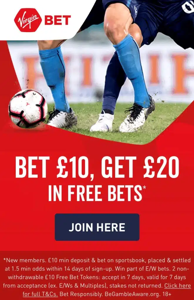 As mentioned above, Virgin have a bet £10 get £20 welcome offer, as well as a £10 free acca, bet every week when you place 5 x qualifying bets. Virgin also offer loyal customer a free bet on their birthday and run weekly money back on selected horse racing bet promotions.