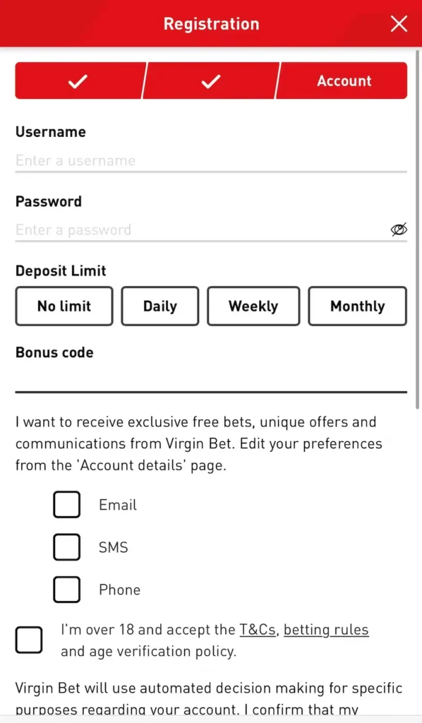 Signing up to Virgin Bet is a simple process.