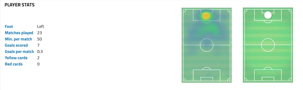 Spending the vast majority of his time on the pitch in the center of the park or the half spaces on either side, the 21-year-old is a pure goalscorer who loves to get into the right position to offer a killing blow in front of goal; as noted by his averaging 6.94 touches in the 18-yard-box/90min.