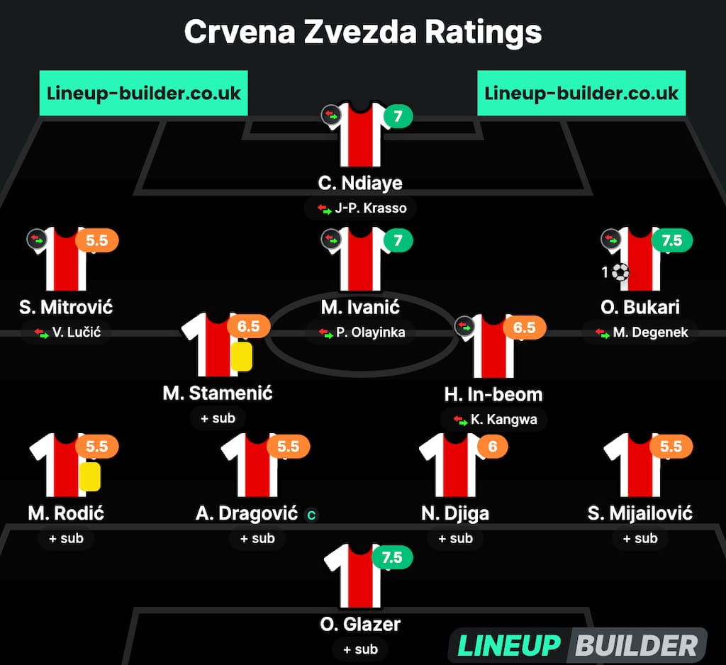 Red Star make five changes to the team that lost 2-1 away at FK Cukaricki in the Serbian top-flight on Saturday.